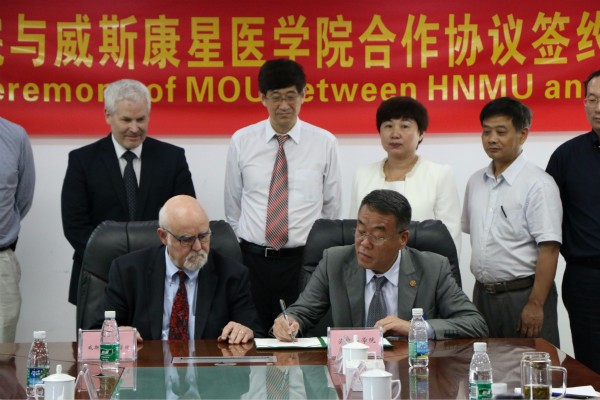 与威斯康星医学院合作办学协议》,正式确立了两校的合作关系。校办、国教院、科研处、相关二级院系部负责人、各附属医院负责人参加了签约仪式。