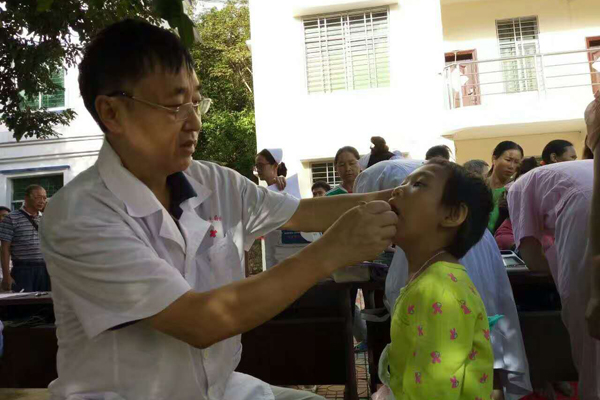 儿科专家杨太根主任给黎族小朋友检查