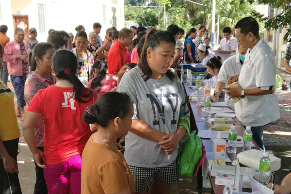 此次义诊活动内容丰富、形式多样。活动现场,医护人员为广大黎族同胞认真测量血压、测视力、测血糖、听诊检查,对身体出现异常情况的黎族同胞,专家们都精心讲解症状产生的原因和日常生活注意事项,并免费发放药品。共为225名黎族同胞进行了义诊,测量视力86人,测血糖43人,开具处方165张,免费发放常用药品1.2万元,发放健康手册216册。义诊更重视对黎族同胞的健康知识普及,特别是黎族妇女同胞,为此由肿瘤外科蒋丽萍护士长对黎族妇女群众进行健康知识讲座,同时配有图片和模型,生动、通熟易懂地向当地黎族妇女群众普及乳腺癌预防、诊断及治疗相关知识,提高黎族妇女同胞的健康意识、防病意识、治病意识。