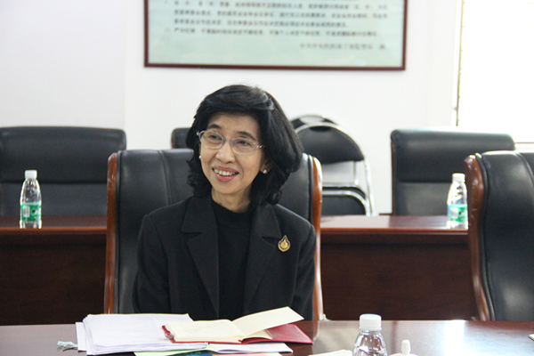 随后,双方在会议室召开了座谈会。黄元华副院长代表我校对Navamindradhiraj大学副校长一行来访表示热烈的欢迎,并希望此次访问交流可以加深彼此的了解,在原本的友好关系上更进一步,促进和协定双方学校的合作意向。Navamindradhiraj大学副校长Dr Varaporn Seehanath也对我校的热情接待表示衷心的感谢,对