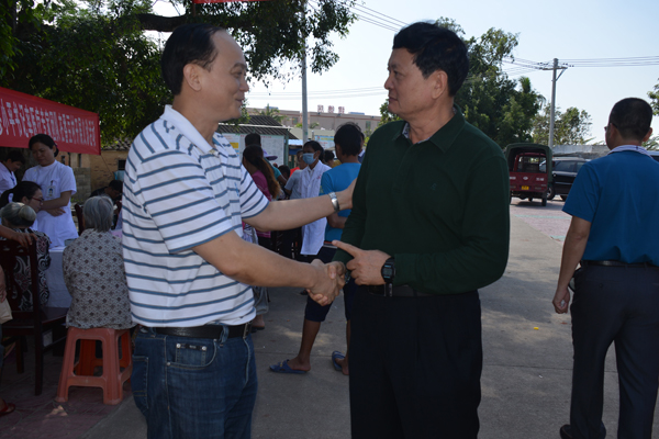 党委书记廖小平率队深入扶贫点乐东县抱由镇番豆村开展义诊活动。由
