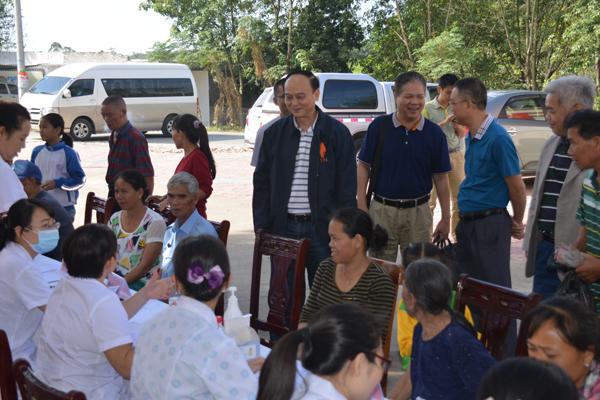 义诊现场十分热闹,不仅有扶贫对口单位番豆村的村民,也有不少附近村镇闻讯赶来的村民。乐东县委书记林北川也来到现场看望大家,对学校有针对性的开展义诊活动给予充分肯定。