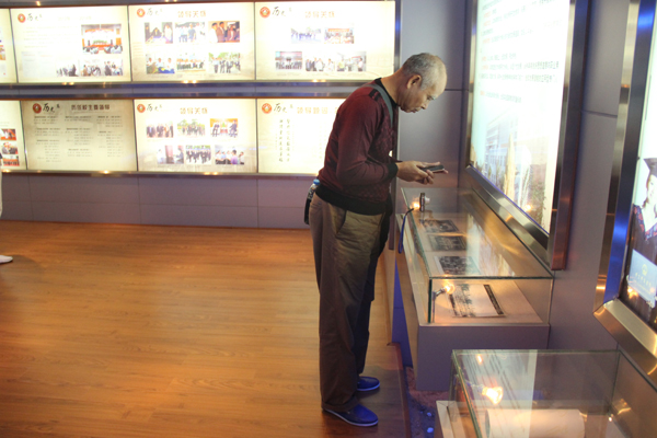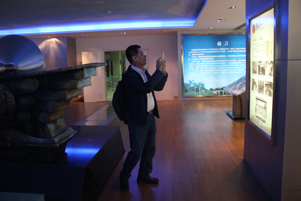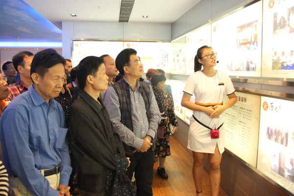 在副书记谢江波的陪同下校友们参观了校史馆,听取讲解员介绍我校发展史和现状