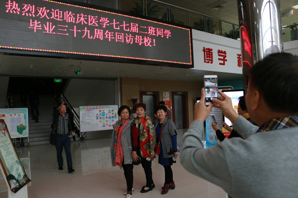 校友们在我校旧址(我校第一附属医院)参观并合影