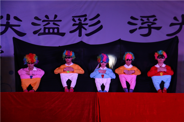 大学生记者团成员演绎风趣逗乐的小人舞,博得阵阵掌声