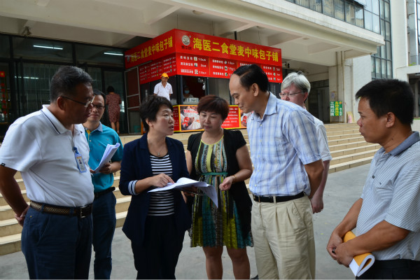 廖小平书记、吕传柱院长向曹献坤厅长汇报了学校防御台风“莎莉嘉”准备情况。曹厅长边听取汇报、边实地察看学生食堂、学生公寓、药物安评中心、人工湖、办公楼等场所。每到一处,曹厅长都逐一进行仔细查看和详细询问,并不时叮嘱重点部位负责人牢固树立安全责任主体意识,切实做到防患于未然,还反复叮嘱要加强巡查,确保安全。对我校领导重视、防御工作扎实表示肯定。她表示,今年第21号台风“莎莉嘉”具有风力强、移动速度快、路径稳、危害大等特点,防御台风形势十分严峻。要求学校认真贯彻《海南省教育系统防风防汛等自然灾害类应急响应行动方案》及《海南省教育厅关于将防汛防风Ⅰ级应急响应的紧急通知》等文件的要求,严格落实防风措施,把防止师生伤亡放到第一位,确保师生的生命安全,减轻灾害损失。