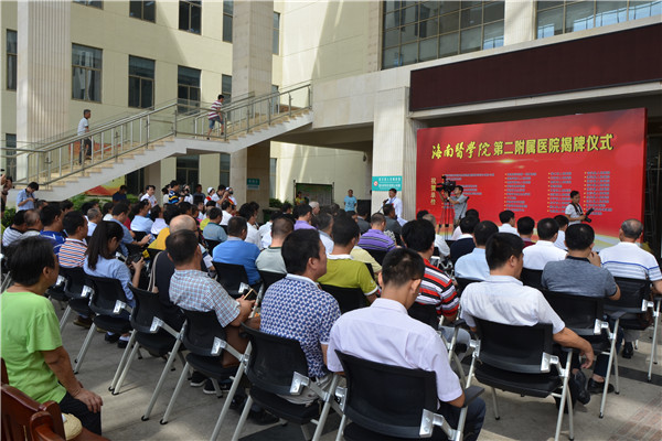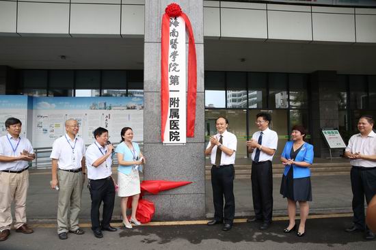 院的发展历程,寄语携手并进,互助共赢,为学校的发展、海南人民的健康事业做出更大的贡献;并代表医院接受廖小平书记与吕传柱院长授予第一附属医院、第二附属医院的牌匾。