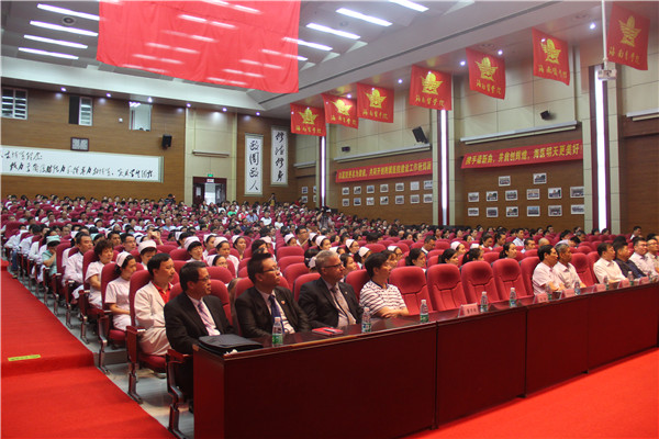 学校全体职工,第一、第二附属医院领导班子及科室主任,第三、第四、第五附属医院、海医附属中医医院、海南省肿瘤医院等五家医院负责人参加了大会。