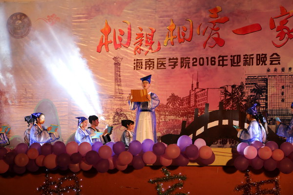 下半场“多彩华章”的各类节目给观众带来了视听盛宴。外国留学生表演的歌舞串烧《我们的歌》又一次点燃全场,观众也被充满异域风情的歌声深深吸引。由我校附院演绎的《相亲相爱》歌曲彰显了海医蒸蒸日上的发展状态。充满海南黎族文化特色的竹竿舞《黎风竹韵》在一片欢闹声中为晚会画上圆满的句号,赢得现场观众的阵阵掌声。