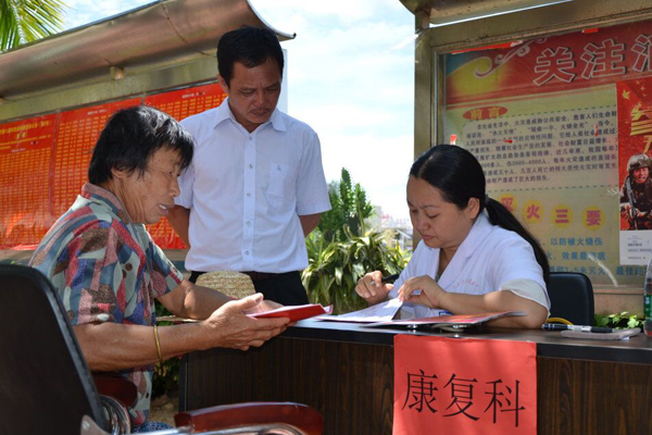 陵水英州的孙大妈是内科韦玲副主任医师接诊的第1位村民。“大妈,您血压有点高,我开的这些药,您回去按时服用,饮食方面尽量少吃盐和肥肉等脂肪类食物,多吃新鲜蔬菜和水果。”韦主任温馨问候让孙大妈心里倍感温暖,虽已看完了病,可她还是久久不愿离开义诊现场。