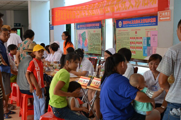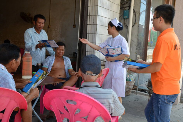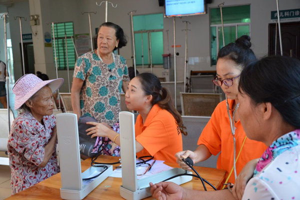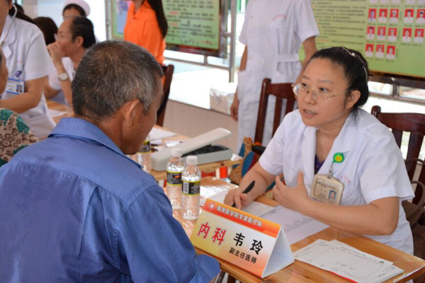 看到当地群众如此渴求,医疗队员们顾不上舟车和骑行的劳顿,立即投入忙碌的义诊工作,测血压、测血糖、问病情、做检查、开药方、行推拿、配发药、发送健康教育宣传资料,热情周到地接待每一位群众,尽心竭力地为他们解难答疑、诊治病痛。