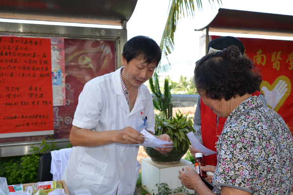 7月的海南,骄阳似火,已近中午12点,但前来咨询看病的群众仍然络绎不绝,义诊活动不得不延长半个小时。