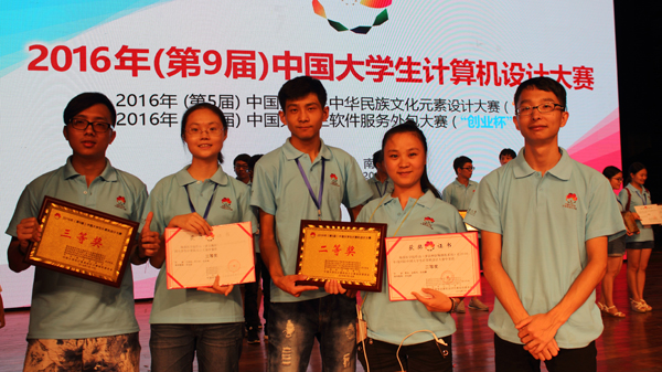 2016年(第九届)中国大学生计算机设计大赛由教育部高等学校计算机专业教学指导委员会、高等学校软件工程专业教学指导委员会、高等学校大学计算机课程教学指导委员会、高等学校文科计算机基础教学指导分委员会,以及中国教育电视台联合主办。大赛共设十个大类的竞赛,涵盖中华民族文化元素设计、软件服务外包、软件应用开发、动漫游戏等诸多领域,其中,中华民族文化元素与软件服务外包竞赛由东南大学自动化学院承办。大赛初赛通过省级(直辖市、自治区级)预赛和国赛网评的方式筛选作品,决赛采用现场演示和答辩方式。来自全国27个省、市、自治区200多所本科院校的1000多位同学带着439件作品参加此次大赛。最后,经专家评审,此次大赛共评出30个一等奖、155个二等奖、254个三等奖。