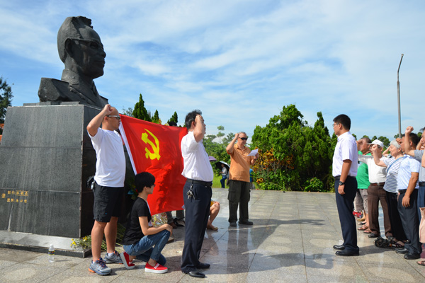 党员们参观海南省爱国主义教育基地——解放海南战役决战胜利纪念碑、马白山将军纪念园