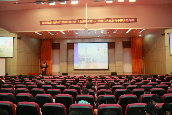 中国传统文化是中华文明演化而汇集成的一种反映民族特质和风貌的民族文化,是居住在中国地域内的中华民族及其祖先所创造的、为中华民族世世代代所继承发展的、具有鲜明民族特色的、历史悠久、内涵博大精深、传统优良的文化。在这样可以说是独树一帜的文化背景下,明清时期文化所绽放出来的许多特性,也是后世许多学者们苦心钻研的方向。朱教授以“明清三大家族与中国文化传统”为题,采取讲故事的形式,以明清三大家族命运为典型事例,给在场的师生们解读了明清“三大家族”与中国文化传统,具体生动地分析论证了中国传统文化,尤其是作为中国传统文化重要核心价值观念的“忠”、“仁”与“孝”道文化,不仅融入人们生活的思想观念,而且影响着历史的发展,展示中华民族优秀传统文化的巨大魅力。