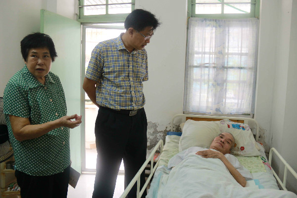 随后,廖小平、谢江波先后来到位于海口市龙华路50号职工宿舍区,分别登门看望慰问近90岁高龄的离休党员干部符志雄,近80岁、患病常年卧床的退休党员职工王绳裕,亲切地询问老同志的健康状况、生活情况、存在困难等,叮嘱他们保重身体,安心养病,早日康复。