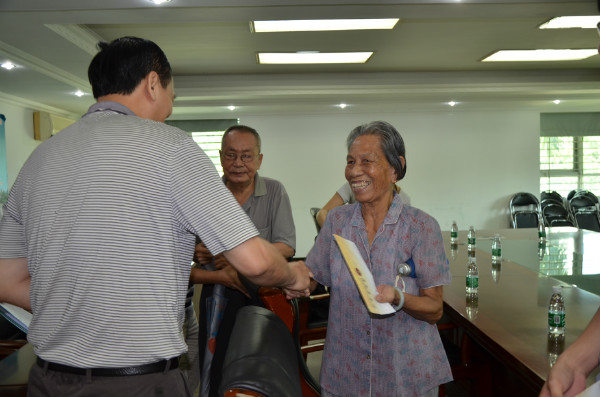 座谈会上,校领导与老党员和困难党员代表们亲切交谈、嘘寒问暖。现年88岁的离休干部陈萍饶有兴趣地讲述了自己参加琼崖纵队投身革命的经历,展现出一位老党员特有的风骨;现年83岁的符气生老人则讲述了自己参与私立海强医事职业技术学校创建的经历;其他3位师生党员代表也表达了对党的生日的祝贺和感谢党组织的关怀。在听取5位同志的发言后,廖小平充分肯定了我校广大党员为党的事业做出的积极贡献。他亲自地逐一为老党员、困难党员代表送上慰问金,要求我校有关部门要继续关心困难师生党员的生活,切实为他们解决实际困难。