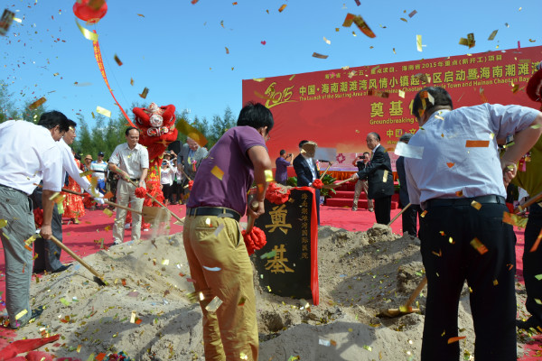 10月28日上午,海南省文昌市锦山镇潮滩湾滨海旅游区建设工地上,彩旗猎猎,备受社会各界关注的海南省“十二五”重点项目、海南省2015年重点(新开工)项目——海南潮滩湾风情小镇起步区暨海南潮滩湾国际医院奠基仪式在这里举行。