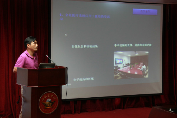 王子振彪同学代表2014级全体研究生发言,他与师弟师妹们分享了自己的学习心得和体会,回顾了一年来在海医的学习生活。