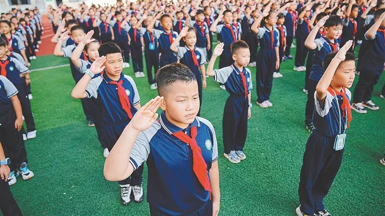 海口市玉沙实验学校开展以“向阳而生,向美而行”为主题的开学第一课教育活动。 高林 摄