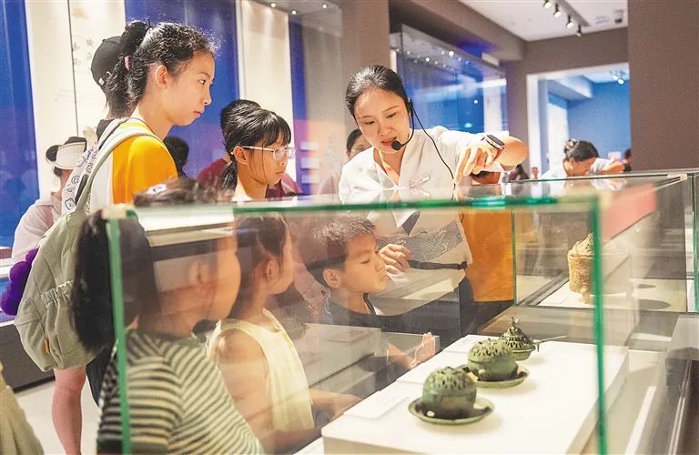 随着暑期来临,省博物馆迎来参观研学热潮,众多家长带着孩子走进博物馆感受历史文化魅力。李天平 摄