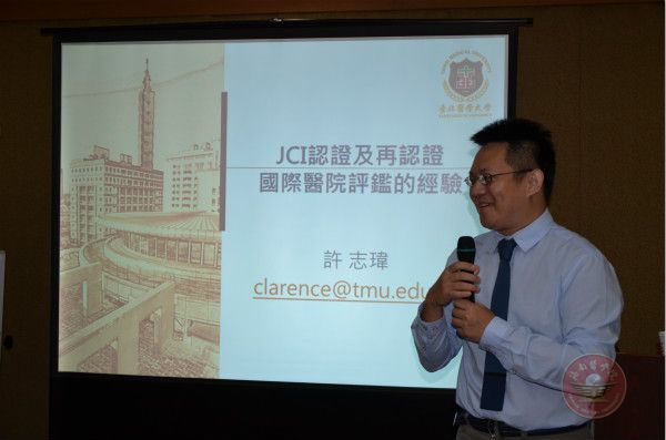 台北医学大学秘书处稽核组许志玮组长在介绍医院评鉴经验