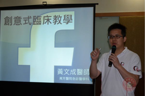 当前,在E-时代,如何让学生把目光全神贯注地聚焦到授课老师身上,积极主动参与教学,挑战着每一位授课老师!台北医学大学万芳医院急诊医学科黄文成医师有关“创意式临床教学”做法和经验介绍,让我们领略到了,通过善于运用、灵活运用Facebook平台,打造医学模拟教学的魅力。他认为,好的老師不能永遠留在過去!面对E-时代,不得不重視它所具有的強大的“潮”流,要用學生的角度去看學生,从學生的角度去教學生。他通过仔细观察,抓住了学生的兴趣和他们关注的热点所在;通过大胆创意,使自己的教学设计做到无中生有、同中求异,让超音波(即超声波)课程-急诊医学-临床医学(三合一训练教学)与Facebook有机结合,通过Facebook的功能应用, 培养了教学/交流/学习社团;通过用心创造,最终使自己的教学深受学生们的喜欢,成为他们愿意排队的“路边摊”。“当Facebook试图改变我们时,我们也应当改变Facebook”。Facebook让黄文成这位年轻教师的教学“潮”了起來。