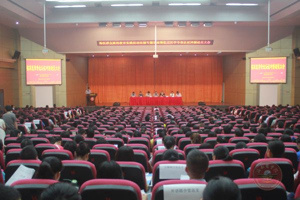 4月29日下午,我校在国际报告厅召开临床医学专业认证冲刺动员大会。校本部全体教职员工、附属医院领导及部分教师、物业公司负责人及员工代表、临床医学专业各年级学生代表参加了会议。大会由学校临床医学专业认证办公室主任陈志斌副院长主持。