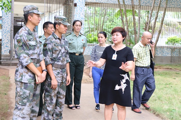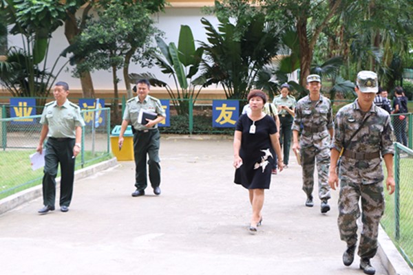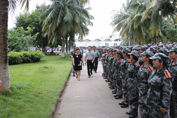 副院长林英姿在学生工作处处长邝家旺、保卫处(武装部)处(部)长覃业亮等部门领导陪同下,携帮训部队军官对新生的军训、寝室进行了视察。