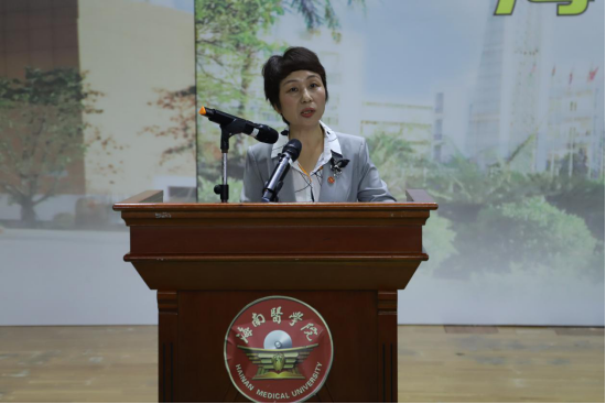 典礼在雄壮的国歌声中拉开帷幕。基础医学与生命科学学院肖乐研究员作为老师代表发言。她代表我校全体教师欢迎新同学的到来,同时也分享了自己的学习和生活体会。她表示,作为一名医学生应当比其他任何专业的学生更尊重生命,要打好基础,终身学习。当前