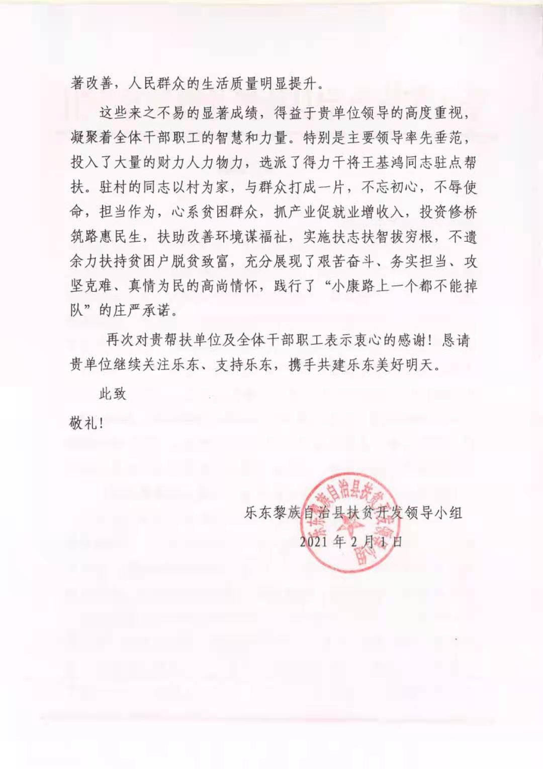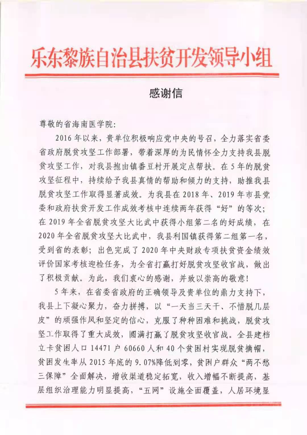 关于乐东黎族自治县扶贫开发领导小组的感谢信