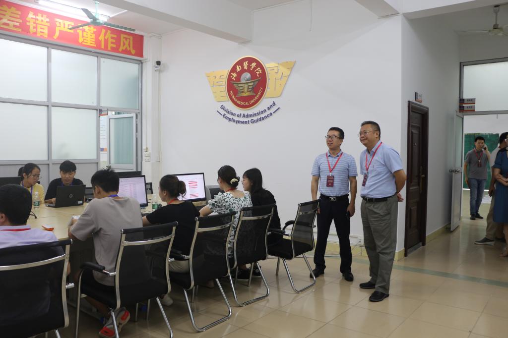 此前7月19日上午,赵建农校长、纪委罗杰书记也来到现场检查指导招生录取工作,慰问录取现场的工作人员。赵校长一行详细了解了招生录取全过程各环节工作,视察了邮寄组和录取通知书、入学须知及一卡通准备情况。赵校长强调要严把录取工作政策性关口,确保零失误,要认真复核数据并及时做好分析,为今后的专业调整和布局提供依据。罗书记强调要严格执行招生录取保密纪律和廉洁纪律,确保录取安全平稳顺利进行。