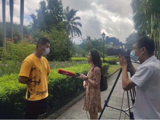 讲座中还向在座大一新生们发放了《防范电信网络诈骗防范宣传手册》。海口市广播电视台记者在讲座结束后对学生代表进行了采访。(保卫处供稿)