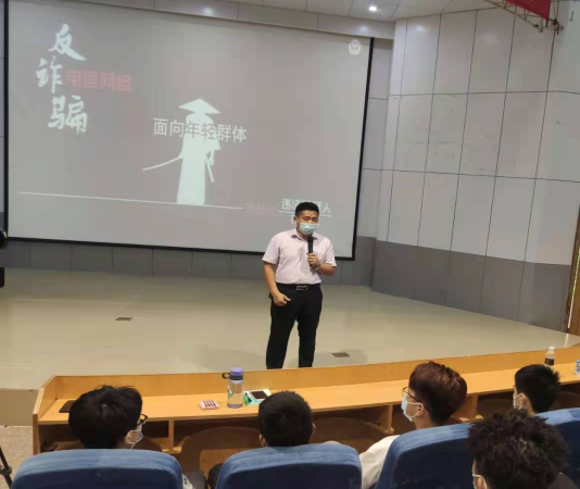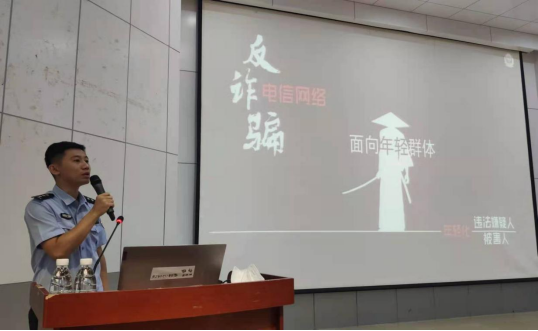 校园,为我校新生进行大学生入学教育防诈骗专题讲座。此次专题讲座由保卫处处长王基鸿主持开场仪式,派出所陈家振警官和我校保卫处吴乾圣老师共同主讲。讲座内容丰富精彩,生动活泼,引用结合多起真实案例,详细介绍了目前电信网络诈骗的各种套路,并且通过总结经验教训,提醒在校大学生要时刻保持防诈意识,果断识破各类诈骗行为,保障自身财产安全。此次专题讲座将持续进行六场,做到对大一新生的全覆盖,为大一新生打好校园防诈骗的第一次预防针。