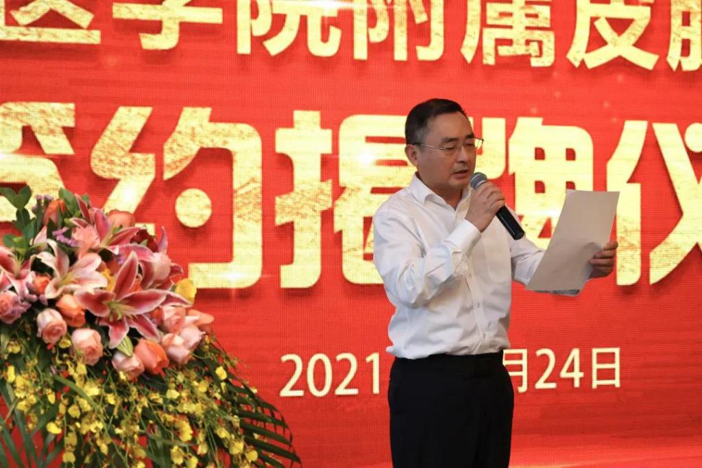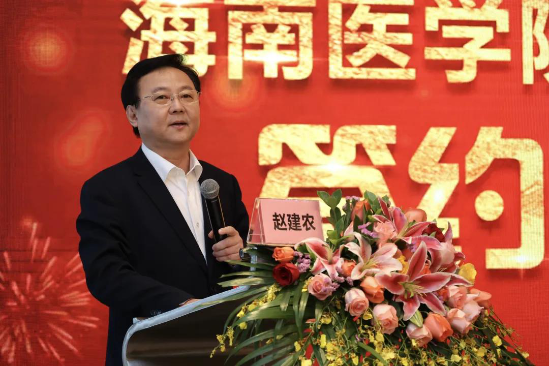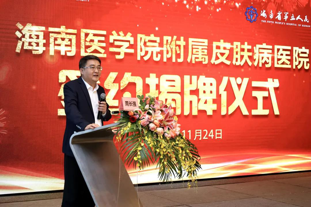 赵建农校长代表我校致辞,他表示此次合作是院校双方共同着眼于海南自贸港建设,加快双方事业发展转型升级的需要。我校将秉持院校联合、优势互补、真心相助、实现双赢的原则,在省卫健委的支持下,真帮真做,做实做细,在教学管理、人才队伍、学科科研、成果申报、临床技能中心建设、研究生培养等方面给予省第五人民医院全面指导和支持,力争把附属皮肤病医院打造成海南皮肤病防治和医学美容等医教研协同发展的标杆。