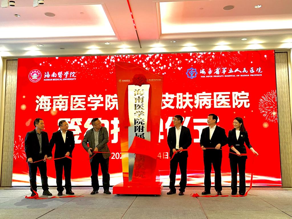揭牌仪式首先由我校副校长向伟宣读了《关于同意海南省第五人民医院作为我校非直属附属医院的通知》文件,宣布省第五人民医院正式挂牌我校附属皮肤病医院,成为我校第七家非直属附属医院。