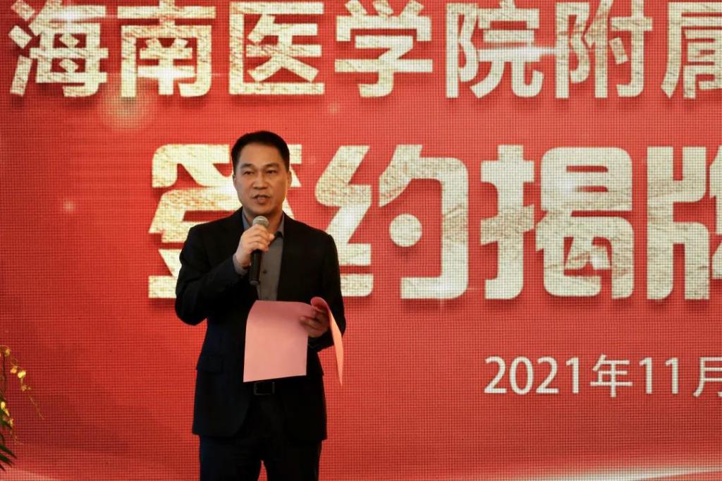 省卫健委党委书记、主任周长强在致辞中,将双方合作比喻成一次美好的“联姻”,他代表海南省卫健委对医院挂牌“