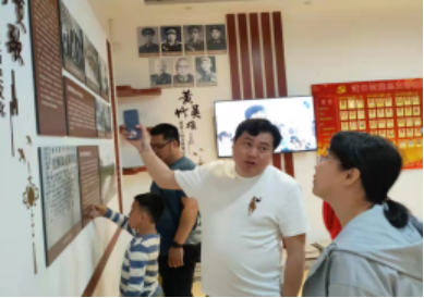 中心党员同志阅览革命先烈事迹 中心党员同志老年活动中心留影