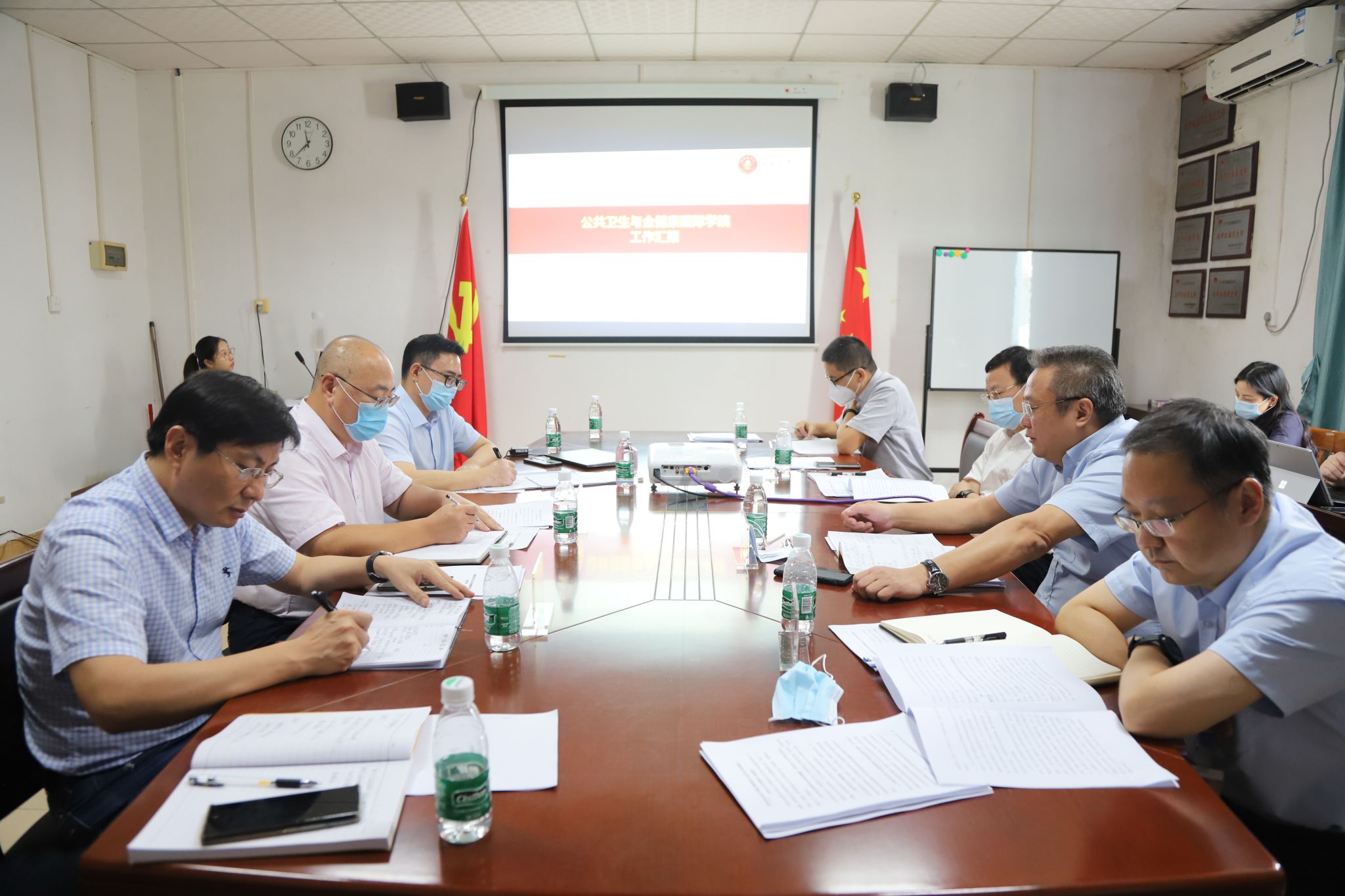 公卫学院”的指示要求,研究探讨高水平公共卫生学院建设发展的顶层设计和具体路径。公卫学院院长宁毅、党委书记刘云儒、副院长张荣光分别汇报了学院当前现状、发展思路和具体措施。参会的各职能部门负责人分别交流了加强公卫学院建设的政策建议。