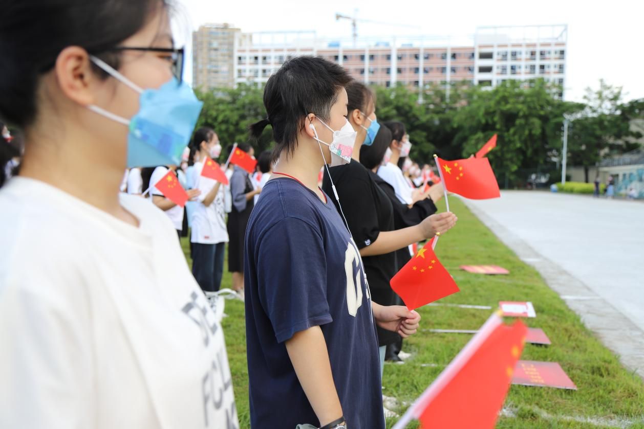 典礼最后,师生挥舞着国旗齐声高唱《我和我的祖国》,共同为祖国母亲73周年华诞献上最深情的祝福。
