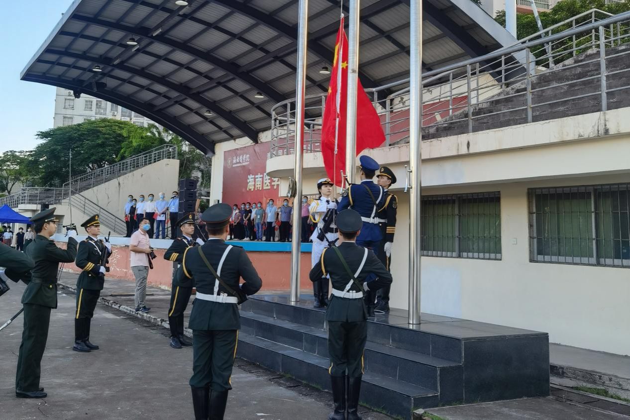 赵建农向新生介绍了我校在海南刚刚经历的疫情中的贡献,本部派出1000余名干部师生、三所直属附属医院派出3000余名医护人员,奔赴全省各地开展流行病学调查、核酸采样、医疗救治、院感防控、信息管理和志愿服务等工作,遍布全省各地的非直属附属医院和教学医院在当地迅速投入战斗。他说,海医人为打赢海南疫情攻坚战倾尽了全力,海医人也为自己学校能够尽早实现开学报到创造了条件。海医成为海南首个复学的高校,展现了学校主动服务海南经济社会发展、服务自由贸易港建设的责任担当,作为海医人应感到骄傲。