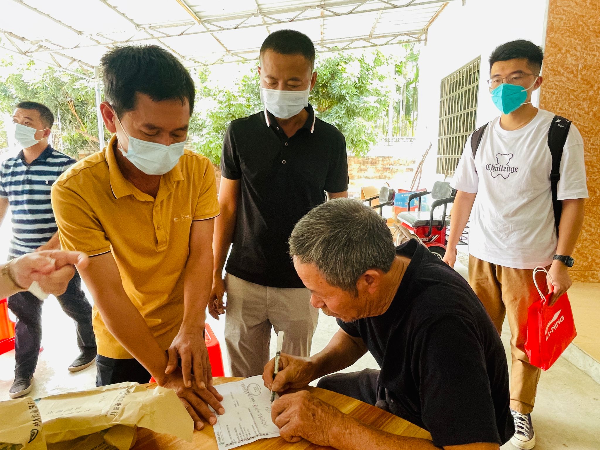 11月17日, 急诊创伤学院党委副书记朱敏率张大智、陈燕老师以及校友代表王淋一行4人前往三亚市崖州区长山村探望急创学院2021届校友邓琦家人,并在崖州区民政局局长、长山村村支部书记等人的见证下,将全体校友的爱心捐款14.176万元转交给邓琦父母。此次捐助,是继教职工捐款35973.17元后,再次发动校友募集的捐款。