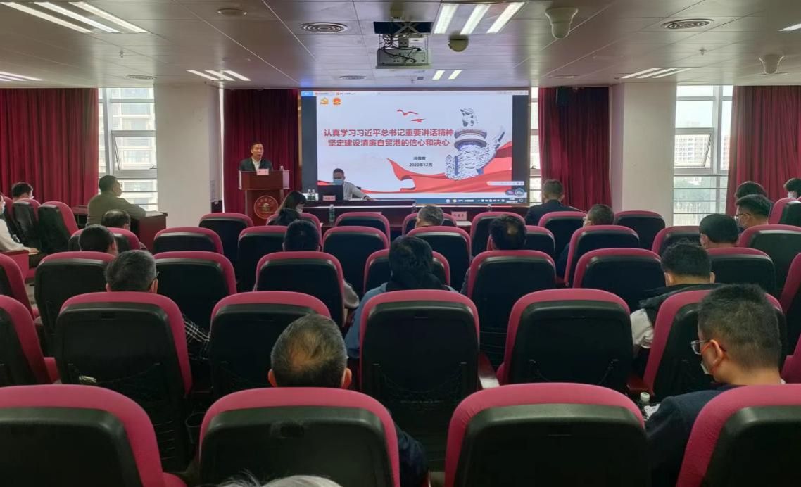 为深入学习贯彻党的二十大精神,落实省委关于推进清廉自贸港建设的重要部署,扎实推进“清廉海医”建设。12月14日下午,学校纪委(监察专员办)举办“清风廉韵”讲堂(第八讲),邀请省纪委常委冷葆青同志作题为“认真学习习近平总书记重要讲话精神,坚定建设清廉自贸港的信心和决心”的专题讲座。会议由学校党委委员、纪委书记、监察专员罗杰主持。