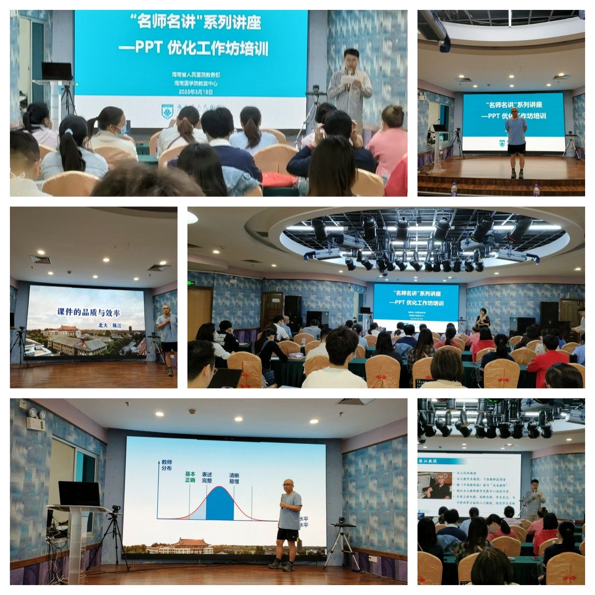 教师发展与人才服务中心(以下简称“教发中心”)组织举办“林筱海”教学研究活动第一期“PPT优化工作坊”。本次活动邀请了北京大学陈江教授做报告。陈江教授系京大学教师教学发展中心培训专家,曾获教学卓越奖、十佳教师获得者,被《中国教师报》誉为“未来教师”,近年来受邀做PPT运用、直播、教学互动等主题的讲座百余场,广获好评。工作坊分两个会场进行,为期两天,首场在