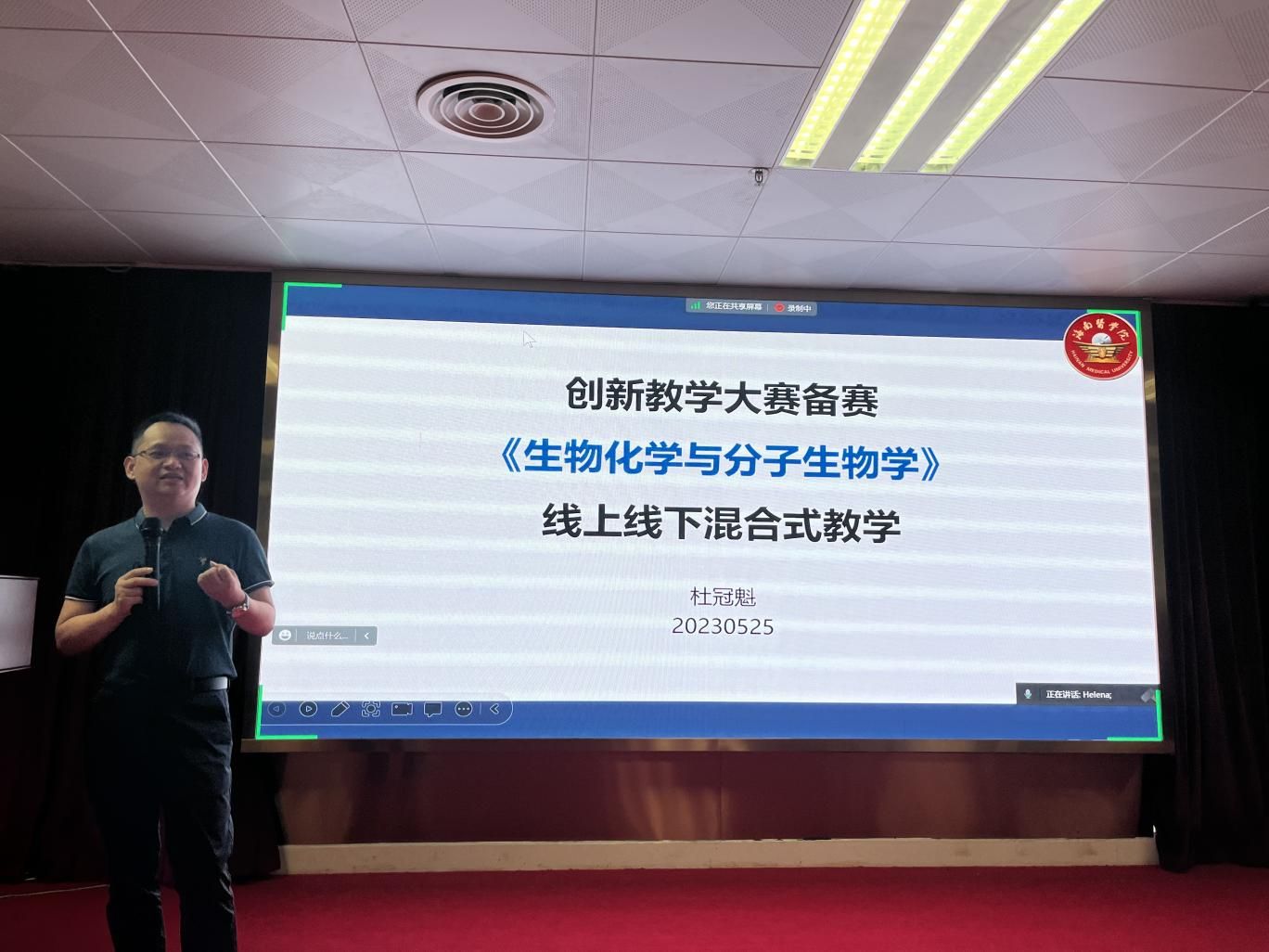 5月25日下午,教师发展与人才服务中心举办高校教师教学创新大赛经验交流会。本次交流会邀请第三届全国高校教师教学创新大赛海南赛区新医科组个人(团队)一等奖获得者、基础医学与生命科学学院副院长杜冠魁教授进行备赛经验和参赛心得分享。