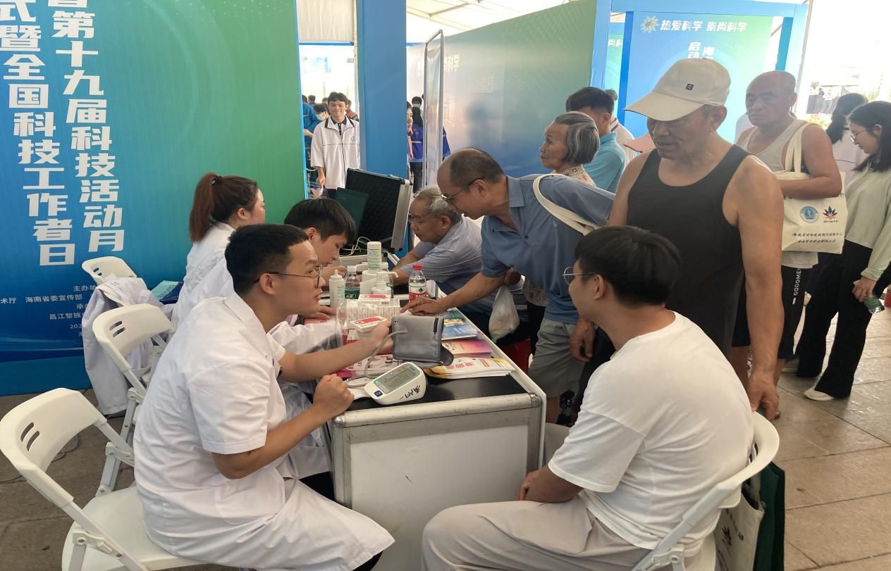 全科医学与继续教育学院党委书记王身坚、院长常彩红一行8人参加活动,在启动仪式展会上布展宣传,并开展义诊活动。我校展示了学生手工制作的南药黎药文创产品;宣传了学校及科研平台;开展了甲状腺疾病、高血压疾病、骨质疏松症、糖尿病的科普和咨询;免费检测血压、检测骨密度,并免费发放了维生素D3等抗骨质疏松药物。