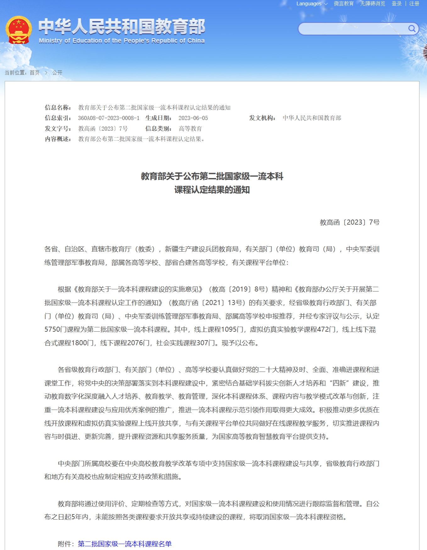 近日,教育部公布第二批国家级一流本科课程认定结果,我校组织申报的《实验生理科学》(线下一流课程)、《神经病学》(线下一流课程)、《局部解剖学》(线下一流课程)三门课程成功入选,这是我校在课程建设领域取得的一次重大突破。