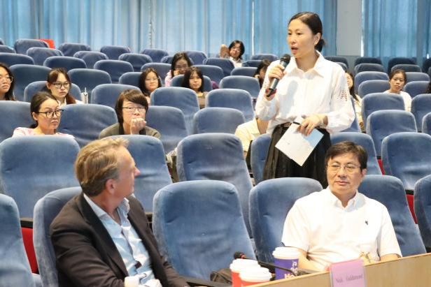 在交流讨论环节,现场师生用中英文踊跃提问,积极交流想法,氛围十分热烈。