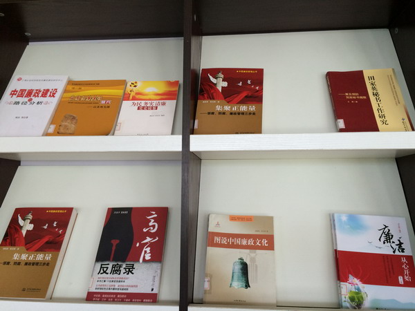 为进一步加强反腐倡廉教育,丰富教育形式,近日,我校纪检监察审计室会同图书馆,开展了以“加强廉政建设,弘扬正气清风”为主题的党风廉政建设系列书展,在图书馆三楼设立专门书架,展出了《中国廉政建设路径分析》、《为民务实清廉党史镜鉴》、《高官反腐录》、《民间反腐防腐》等近200本党风廉政建设书籍。