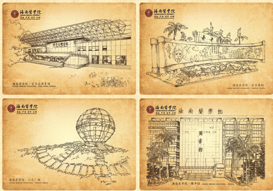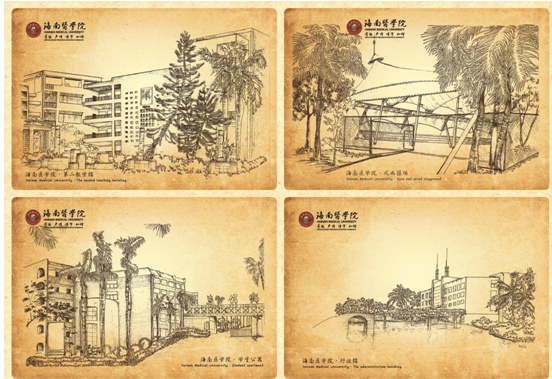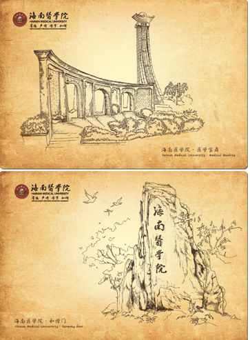 近日,在学校资产经营有限公司的大力支持下,临床学院2012级医学影像专业的胡家熙同学手绘,2012级应用心理专业的宋强同学承担后期制作, 两位同学合力完成的这套“海醫·記憶”手绘明信片于我校师生正式见面。两位同学用细腻的笔触,以传统的工笔绘画展现了海医校园的美丽风景,饱含了海医学子对母校的浓情与眷恋,表达了海医学子与时俱进,共建和谐校园的美好愿望。